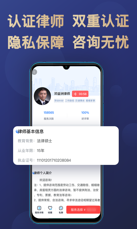 全国律师资源:平台整合了全国30万执业律师,覆盖所有法律专业领域。每个城市都有专业律师入驻,确保您能就近获得法律服务。平台采用系统+人工双重审核机制,严格把控律师资质,保证每位律师都具备专业能力和丰富经验。