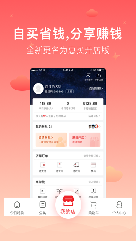 惠买开店版App(原荟健康)迎来全新升级,以焕然一新的界面设计和功能布局为用户带来更优质的购物体验。平台聚焦大健康领域,通过"天天特卖"模式每日精选优质商品,让消费者享受超值优惠。用户不仅能以优惠价格自购商品,还能通过分享商品链接赚取佣金,实现"自买省钱,分享赚钱"的双重收益。无论是上班族寻找副业,还是家庭主妇居家创业,都能通过零门槛开店功能轻松开启移动端创业之旅。