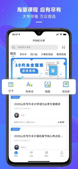 POKE大学App是一款专为专升本、考研等学历提升需求打造的一站式在线学习平台。平台汇聚了海量优质课程资源,涵盖英语四六级、计算机等级、教师资格证等各类考试内容。通过名师直播、录播课程和无限回放功能,学生可以随时随地进行高效学习。平台采用智能推荐系统,根据用户学习进度和薄弱环节精准推送学习内容,搭配专业的学习资料和配套服务,帮助考生系统化掌握知识要点,实现高效备考。