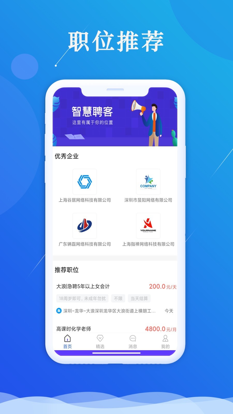 精选职位,平台严格筛选入驻企业资质,汇集各行业头部企业的高薪优质岗位,涵盖互联网、金融、制造等多个领域,为求职者提供丰富多样的职业选择。