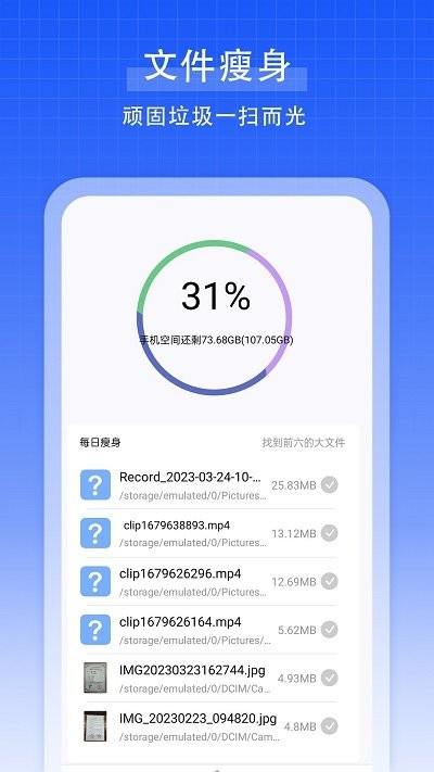 强力手机清理垃圾软件手机最新版下载现已全面升级,新增多项实用功能,优化清理算法,提升用户体验。无论您是想解决手机卡顿问题,还是需要释放存储空间,这款软件都能满足您的需求。立即下载体验,让您的手机重获新生!