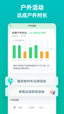 【户外活动】结合当地天气和作息时间,智能规划课内外日间活动,确保每天获得足够的自然光照,有效达成视力防控目标。