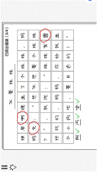 游戏操作简单易上手,新手玩家可以快速掌握基本玩法。首次进入游戏时,系统会引导玩家完成基础教程,了解游戏规则和操作方法。初始阶段只能选择第一关进行挑战,这一关相对简单,主要帮助玩家熟悉游戏机制。在第一关中,玩家需要在文本中找出四个错别字,分别是"啊"、"文"、"舍"、"日"等常见错字。成功找出所有错误后,点击确认按钮即可进入下一关。第二关的难度会有所提升,需要玩家找出五个错别字,这些错字可能隐藏在更长的文本中,或者以更隐蔽的方式出现。