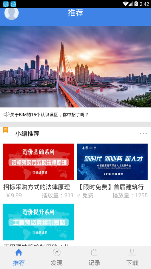 建筑鱼网校app是一款专业高效的一站式建筑行业职业技能提升学习平台,致力于为建筑从业者提供全面系统的知识体系和实践技能培训服务。平台精心打造了涵盖建筑基础理论、工程造价实务、项目经营管理、BIM技术应用等核心课程体系,同时根据行业发展动态持续更新前沿技术内容,满足建筑行业不同岗位从业者的学习需求。无论您是刚入行的新人还是希望提升专业技能的老手,建筑鱼网校app都能为您提供个性化的学习方案,欢迎广大建筑行业同仁下载体验这款专业学习工具。