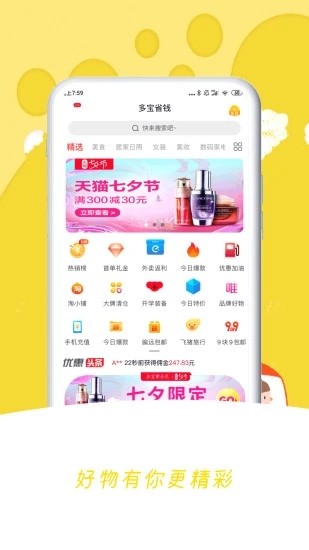多宝省钱app是一款专业可靠的购物助手软件。通过与众多知名电商平台和品牌商家建立深度合作关系,多宝省钱app为用户提供了涵盖服饰、数码、家居、美妆等全品类商品的优惠信息。用户只需在多宝省钱app内搜索心仪商品,即可领取专属优惠券,一键跳转至合作平台完成购买。这款app不仅操作简单,还能帮助用户轻松省下购物开支,是您网购必备的省钱利器。
