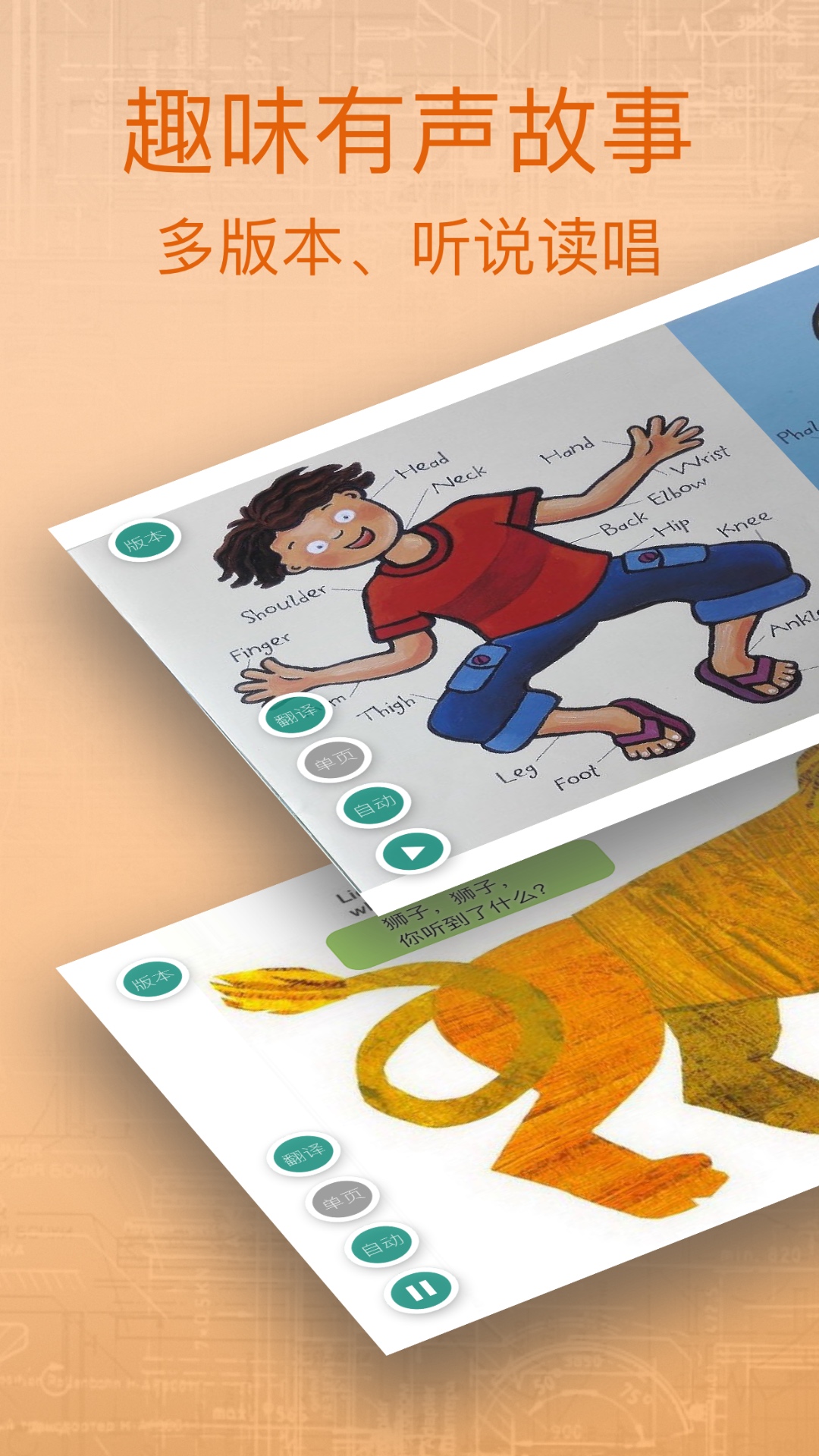 这是一款融合趣味性与教育性的专业儿童英语学习工具,特别采用美式分级阅读体系,精选1000+本原版有声英语绘本。除了包含廖彩杏书单、牛津阅读树等国际知名分级阅读系列外,还特别针对中国儿童的学习特点,精选适合不同年龄段孩子的绘本内容。所有绘本均由专业外教录制音频,发音纯正,语速适中,帮助孩子建立良好的英语语感基础。