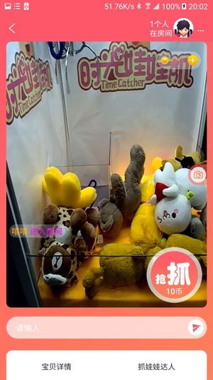 时光娃娃机最大的亮点在于它提供了身临其境的真实体验,通过先进的技术手段,玩家可以实时操控真实的娃娃机,亲眼见证娃娃被抓起并掉入洞口的全过程,这种真实的临场感是其他虚拟抓娃娃游戏无法比拟的。app采用了多机位高清直播技术,玩家可以自由切换不同角度的摄像头,全方位观察娃娃机内的情况,这种设计不仅增加了游戏的可玩性,还能让玩家更好地掌握抓娃娃的技巧。
