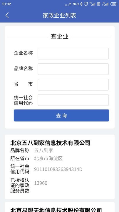 企业信用查询功能,不仅限于个人信用管理,还能查询家政企业的信用评级和经营状况,帮助家政人员选择可靠的雇主。