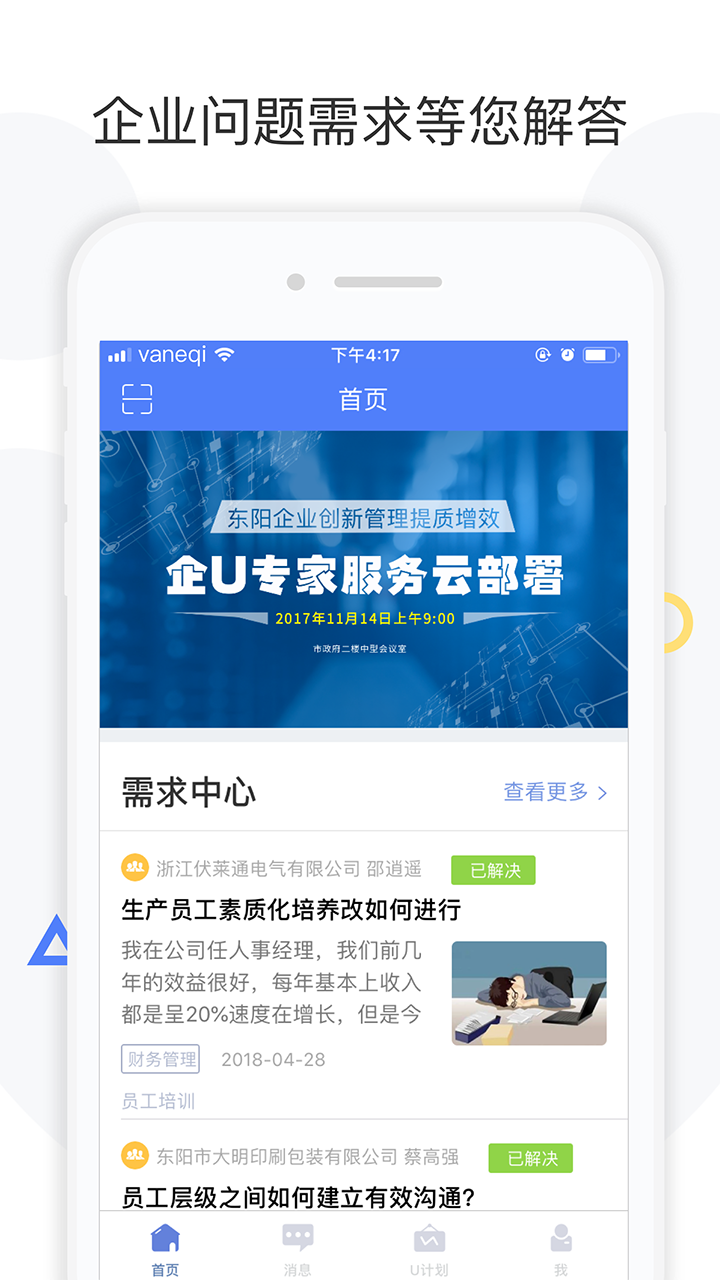 企业通过购买你的成长U计划,邀请你参与到公司解决问题的过程中来。平台提供项目全流程管理工具,包括需求确认、方案制定、实施跟踪等环节,确保服务质量和效果。