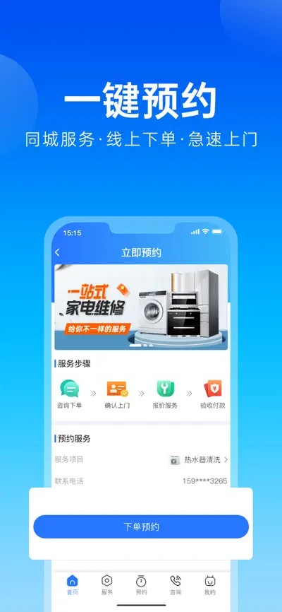 一步到家家庭维修app是一款专注于为家庭用户提供全方位维修服务的专业平台。在这里,您可以轻松找到各种家电维修、家居维护等生活服务,涵盖门窗维保、家电修理、开锁换锁、厨卫清洁等众多项目。通过线上预约功能,专业维修人员将快速上门为您解决问题,让您足不出户就能享受便捷高效的服务体验。