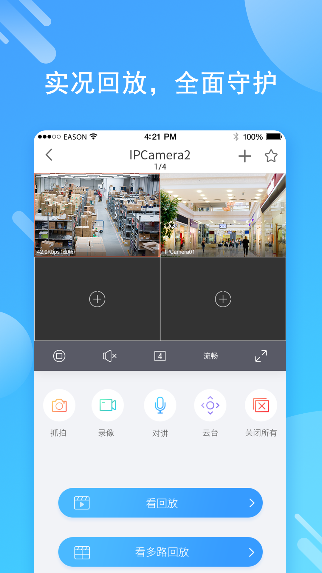 实况回放,全面守护:支持多路视频同时查看,提供最高30天录像存储,可按时间、事件类型快速检索回放,重要画面永不遗漏。