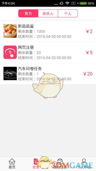 用户接收完成官方、合伙、个人发布任务,赚取佣金;