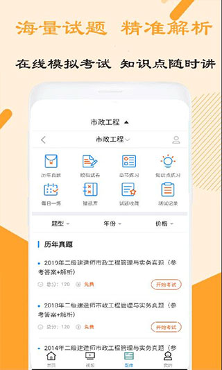 希赛网二建市政工程视频智能题库包含每日一练、历年真题、模拟试题、高频考点、知识点练习等海量试题;10万+的题库数据,随时随地打开手机刷题,错题库,试题收藏板块让学员掌握自我学习情况,实时对学习成效给出客观的总结分析,学练结合,稳步提分,拿下考试不在怕的。