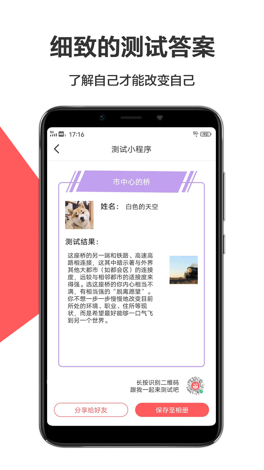 心理测评以专业科学的测试方法,为用户提供准确可靠的心理分析报告,帮助解决生活中的各种心理困惑。