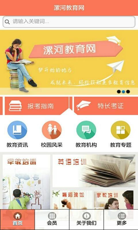 漯河教育网是提供漯河地区教育行业的综合性客户端,手机用户可以轻松查找到教育资讯、教育专题、校园风采、教育培训、早教培训、英语培训、舞蹈瑜伽、特长考证、家教培训、教育机构、报考指南等丰富的教育信息。