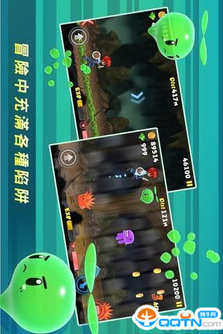 街機模式:三種場景,30個關卡,多種陷阱;盡可能的將史萊姆擊倒,避免受到傷害,跑到終點即可過關!