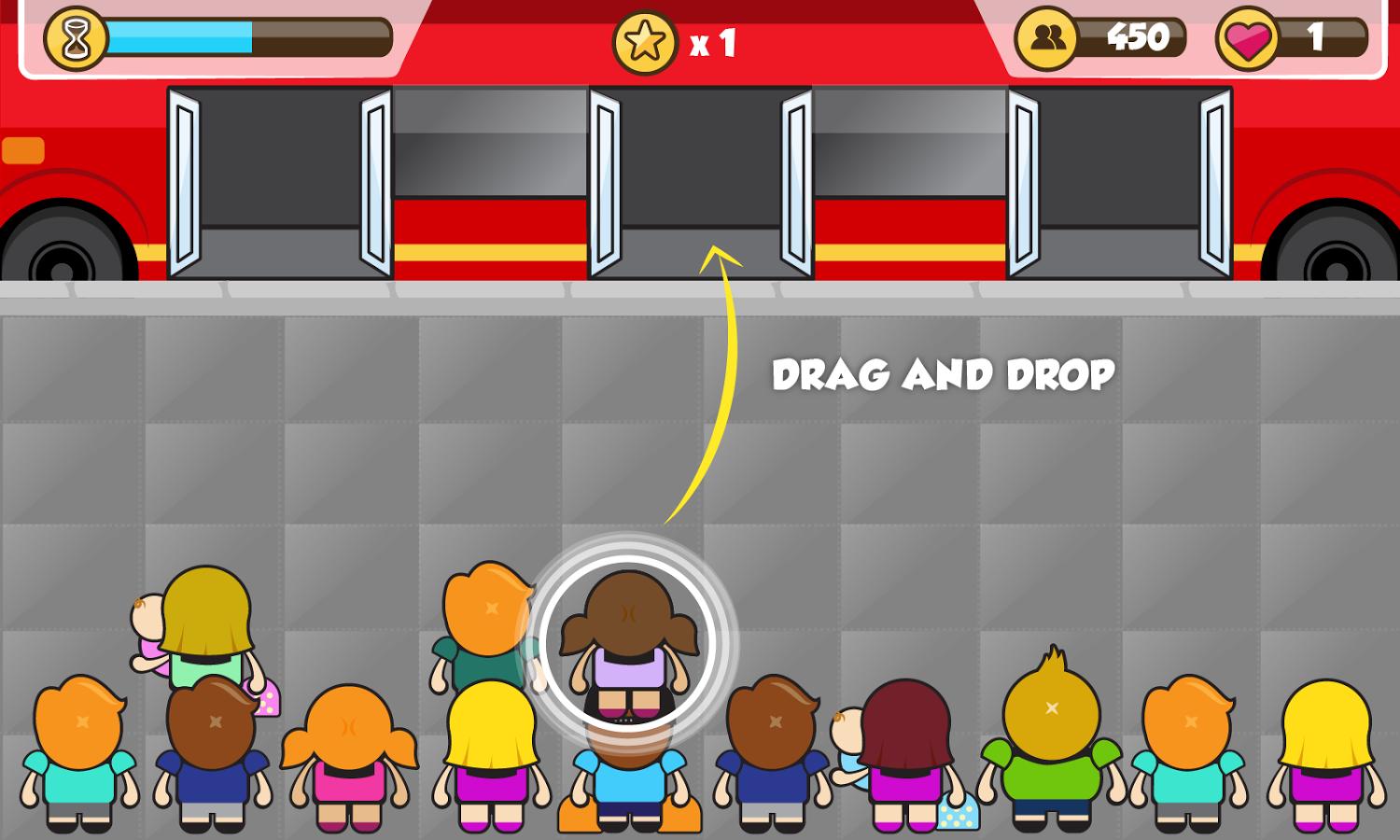 每天等公交的人都很多,所有的人都只能一起挤公交,但是总有人挤不上。游戏玩法很,简单得让人感觉点单调。你只需要等公交来的时候,尽可能快的将等车的人挤上公交,最终赶上公交的人越多,得分越高。