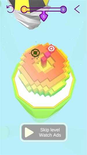 面对彩色分层物体时,根据红色箭头指示,参考上方进度条数值【9】,在恰当时机进行操作以推进游戏进程。