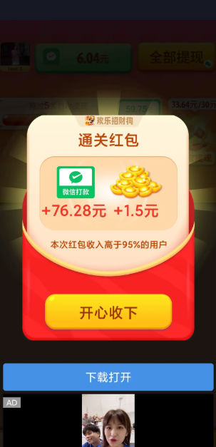 我这段时间的奖励都不太行了,基本都是1-2元左右,这个游戏只拿了0.3红包。