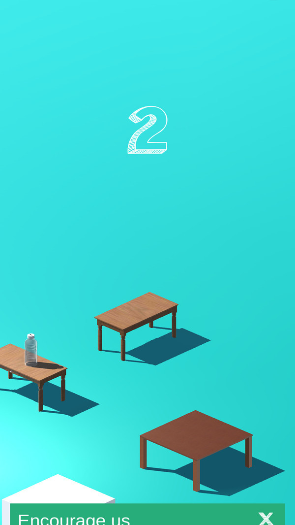 2、你可以通过按住屏幕来积蓄能量,松开即可让瓶子从一张桌子上跳到另一张桌子上。这种操作方式简单直观,但需要玩家精准控制按压时间,以确保瓶子能够准确落在目标桌面上。随着游戏的进行,桌面的距离和位置会变得更加复杂,挑战性也随之增加。
