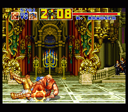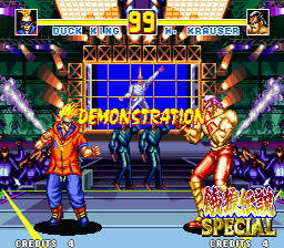 MVS版 / NEOGEO版 / NEOGEO CD版 / MD CD版 / SFC版(日版 / 美版 / 欧版) 通用秘技 只要不输一个回合,直至将BOSS“克劳撒”击败,来自《龙虎之拳》的隐藏BOSS ~ “坂崎亮”便会乱入向玩家发起挑战。 |