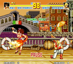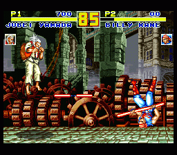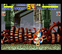 饿狼传说的第三部作品,其实只是二代的加强版本。人物方面追加到了16人,大量的连续技也终于可以使出了。本作可说是相当成功的,在各方面的表现都非常不错。另外做为隐藏人物,来自“龙虎之拳”的亮的乱入也是本作一大亮点(拳皇系列的苗头??)。 |