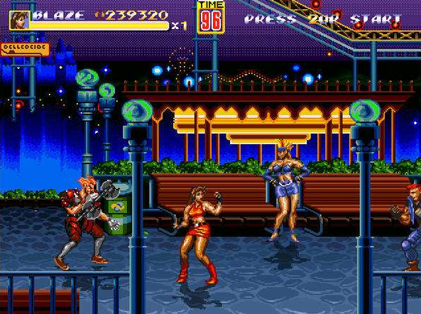 重制版由于用了比较新的一个图象引擎来制作,画面的整体效果都比MD上的三部曲好上不少。当然我们玩的不是画面,那么最关键的操作打击手感如何呢?这个也做得令人赞叹。重制版把原来2代那种拳拳到肉的打击感和3代的速度感融合得相当好。还有不得不赞的就是背景音乐。经过混音制作的三部曲背景音乐是那样的动听和令人怀念。另外,场景制作也看得出制作小组的良苦用心。总的来说,重制版的场景大致可以这样划分:1代场景25%,2代场景35%(2代的人气是最高的),3代场景25%,原创场景15%。下面再简要评论一下各个登场角色。