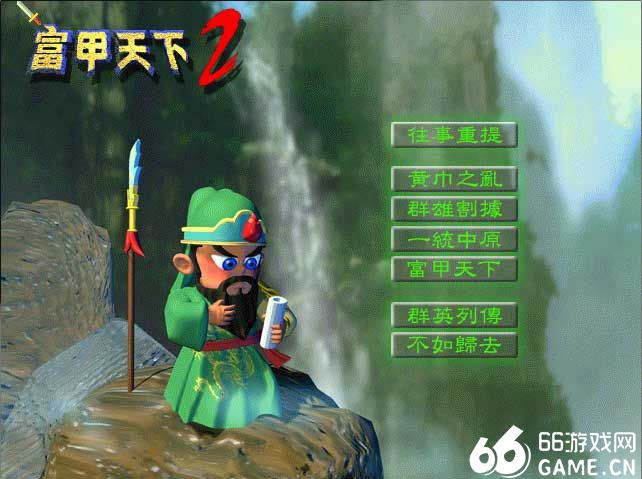 游戏刚开始,进入主选单后有几个选项:1.往事重提;2.黄巾之乱;3.群雄割据;4.一统中原;5.富甲天下,6.群英列传;7.不如归去。其中“往事重提”是读取进度。从“黄巾之乱”到“富甲天下”是不同年代的几个剧本,势力也不同,“群英列传”是游戏制作人员。“不如归去”是离开本游戏,返回DOS。