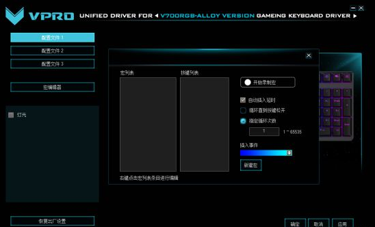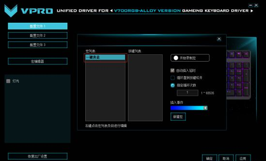 步骤一:打开驱动,选中雷柏V700RGB合金版的宏编辑,点击“宏编辑器”,再点击右下角的“新建宏”,命名为“一键奔走”。