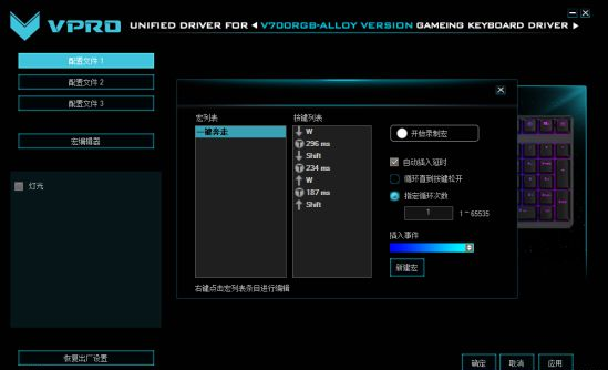 宏怎么设置去完成奔走的动作,需要将默认的W键(向前)+Shift键(冲刺)同时按下,这样就能触发奔走的动作。宏定义可以让你高速闪现,躲避敌人与毒物的侵袭,生存在这个偌大的绝地岛。下面就为大家讲解如何通过雷柏V700RGB合金版的宏定义一键玩转奔走。
