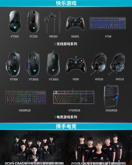 雷柏游戏外设不仅深耕产品的研发与生产,还全面携手电竞各领域,先后与电竞战队(皇族、GT、OMG、AS仙阁、GK)、电竞明星(Miss韩懿莹、Misaya若风禹景曦)、电竞赛事(NEST、IET)、电竞教育(FFF培训基地)都展开过深度合作,共同推动电竞文化发展。此外,雷柏游戏与职业选手探讨游戏操作体验,陆续联手推出过Uzi定制版、Zhou定制版、Miss定制版、OMG战队定制版等多款专属外设产品,持续用中国“智”造,为玩家打造游戏快乐。