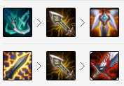 电刀+无尽的亚索标准前期出装,直接到达100%暴击率,饮血剑让亚索持续作战能力极强,最后是两个输出兼双抗的团战装备,守护天使和水银弯刀。