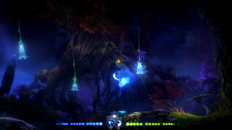 在《精灵与萤火意志》中在水墨沼泽最深处有一个有关音乐的谜题,玩家需要按照提示弹射上空的花朵打开大门,很多玩家会在这里卡住不知道