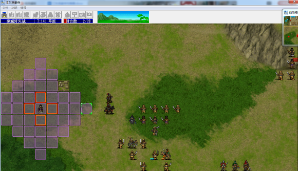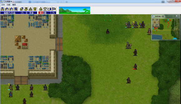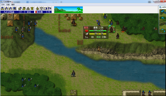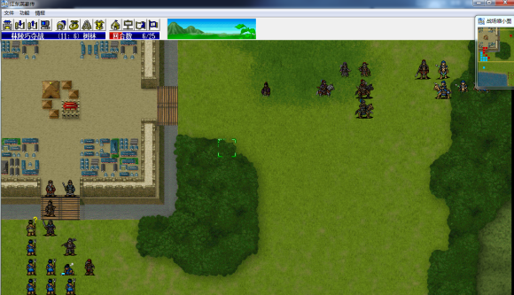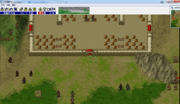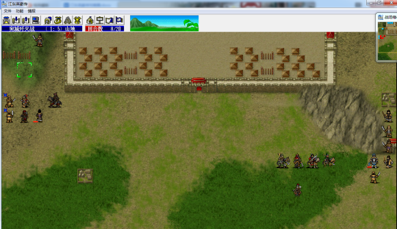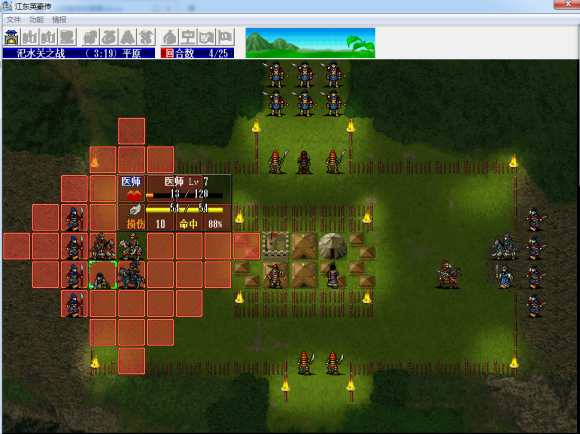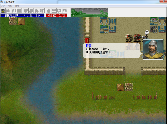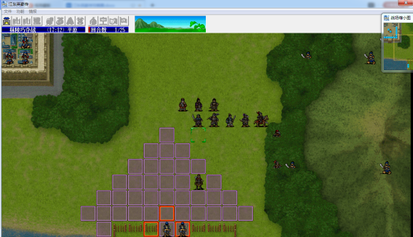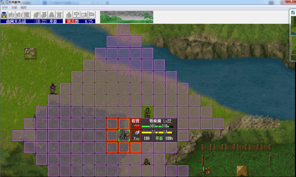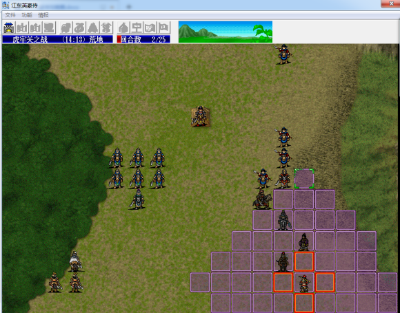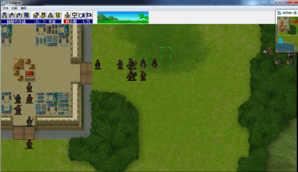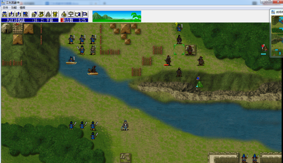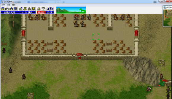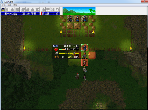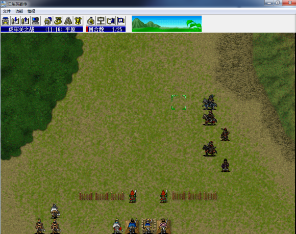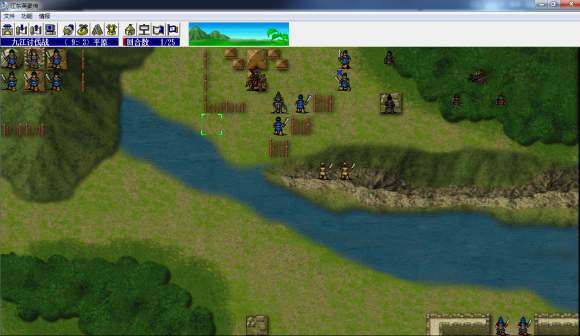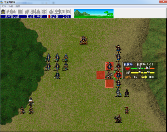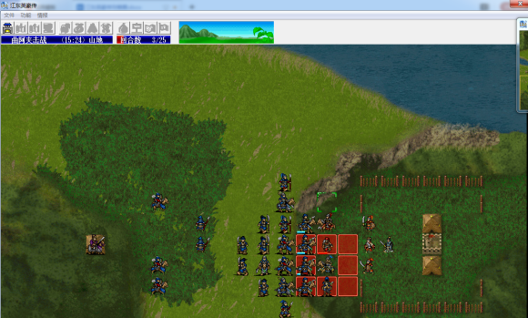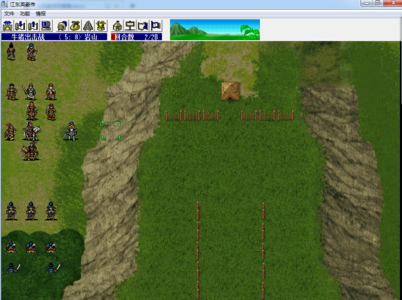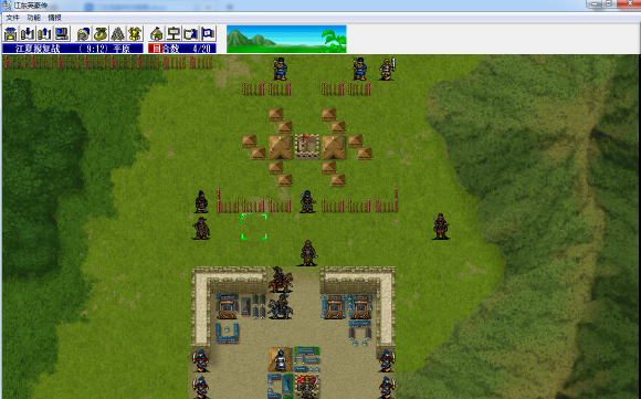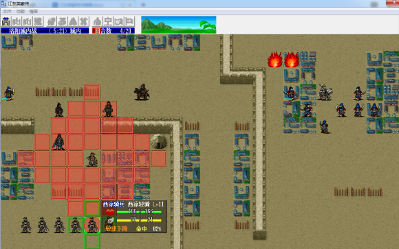 第一回合,2个友军上岸,打门口守卫的步兵,孙坚和3个壮士往右移动。敌军回合,2个水里的骑兵别管。