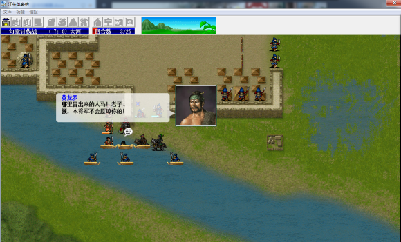 第4回合,右上的敌人不要回头追打,让他们追着我军后面,适时杀。山贼在水里已经被孙策打的喊爸爸,程普上桥引出伏兵,大都督现身做法,海盗全混乱。