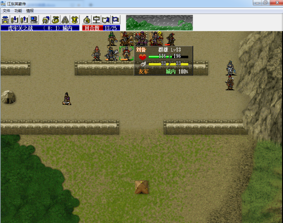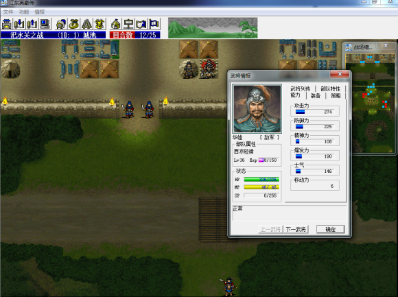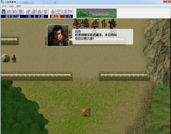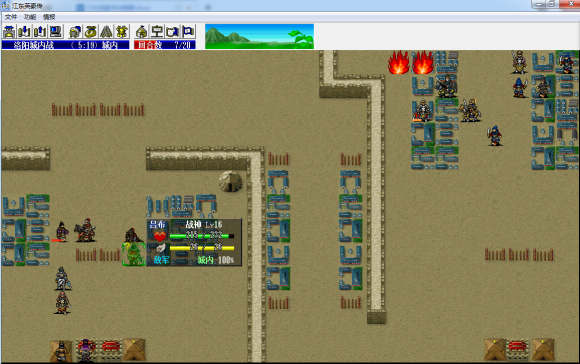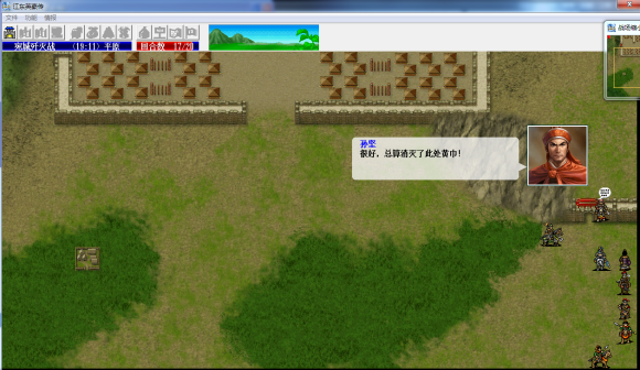 【打法心得】:开局S/L让2个友军将领解除不良状态,尽量让孙坚最大限度的升级,补刀的事情给孙坚来做,友军是可操控的,充分利用。战前记得买点粗粮,二连关卡,注意。