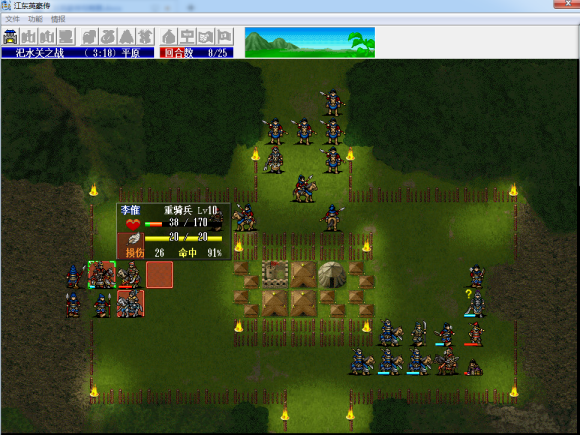 【打法心得】:注意敌人伏兵出现前,我军除祖茂以外的人,一定要保持行动力。卡住合理的位置进行防守反击,优先杀医生和道士。