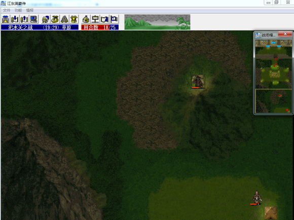 第1回合,程普移动到8:36位置,把敌人吸引下来。别去山上了,村庄里就一个小粮。