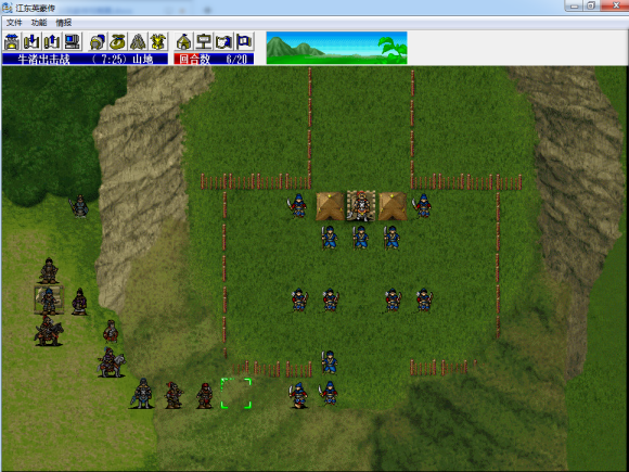 第6回合,我军任意一人超过木栅栏位置,触发放火剧情,敌人全体加防御。这里我个人建议看行军情况,不要尽早的触发,山地我军龟速,几个腿长的一起走。下回合太史慈出现,我军全体加速,还是记得保持状态,循序渐进的往上推即可。