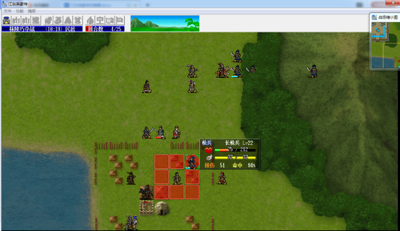 第2回合,敌人海盗团出现,不要在水上纠缠,120能力的海盗不是软柿子。韩当下来射击另外一个残血枪兵,S/L一次性带走。邓当移到孙策上1格射击吕公,孙策左移攻击枪兵,程普直冲下来,依仗众志成城2刀带走吕公。黄盖进鹿砦,带走右边的枪兵。