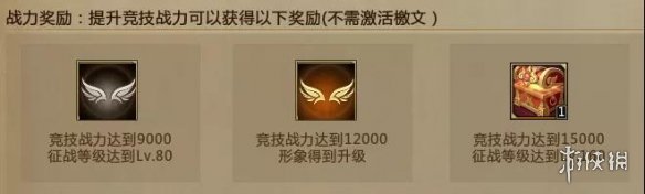 除了上述的等级奖励和出征奖励外,如果娱乐战力和征战等级都达到指定值后,就可以获得对应的战力奖励。