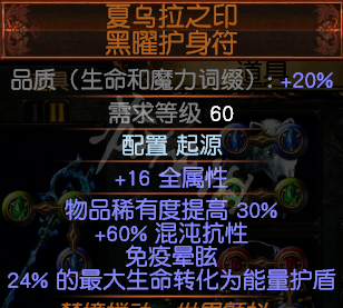 项链绑定,催化剂打满20品质,涂油涂起源,价格1E左右。