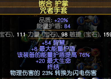 手套选高智慧高护盾的带个终结最好,也可以找点力量属性,价格2E左右。