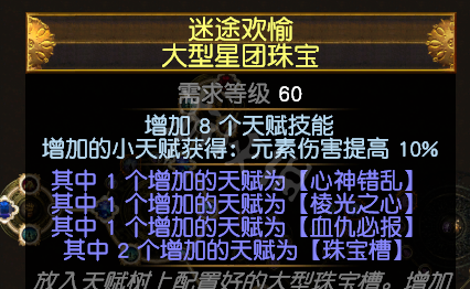 大型珠宝选8个天赋技能的,其他都不行,下面属性其中一个要是血仇必报,其他两个天赋随便。