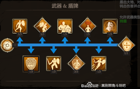 这个我点错了,中间还是一样点1,基本不存在1V1的可能,后期都是团战。格挡反击点满,寻找弱点满,缴械点满,神技。精准打击点满。