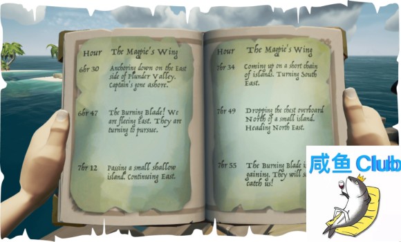 船舶日志记录了这艘船到达尽头之前的致命追击。因为是在追逐过程中(追逐“燃烧之刃”),海盗领主将胸部投下了舷外,以防止其被捕获。