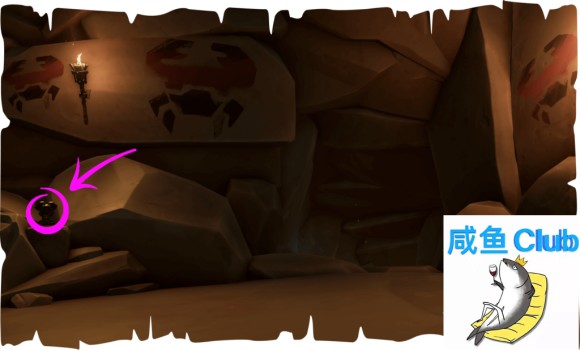 幸运的是,这很容易找到。古代避难所位于东南海滩。寻找野猪头的岩画。图腾的锁就在左侧。