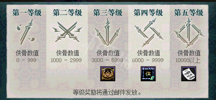 第三等级:3000~5999侠骨,可获得1个侠客行称号。