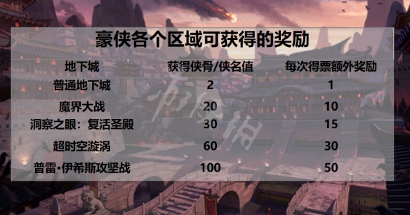 在活动期间,豪侠与少侠组队通关对应地下城之后,即可获得侠骨、侠名值这两种奖励。