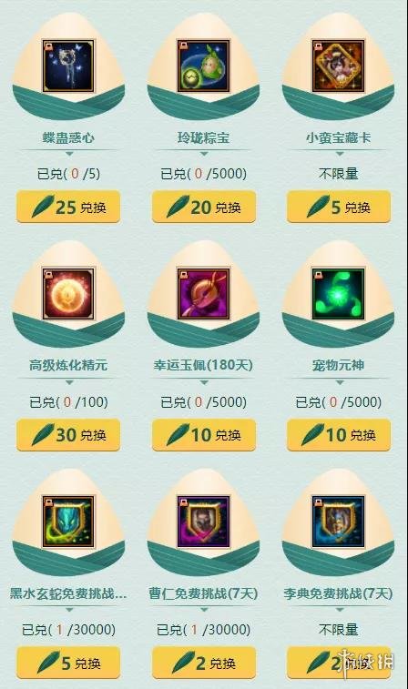 每日全服最多只能兑换5个,所以各位要早点收集完粽叶去抢先兑换。